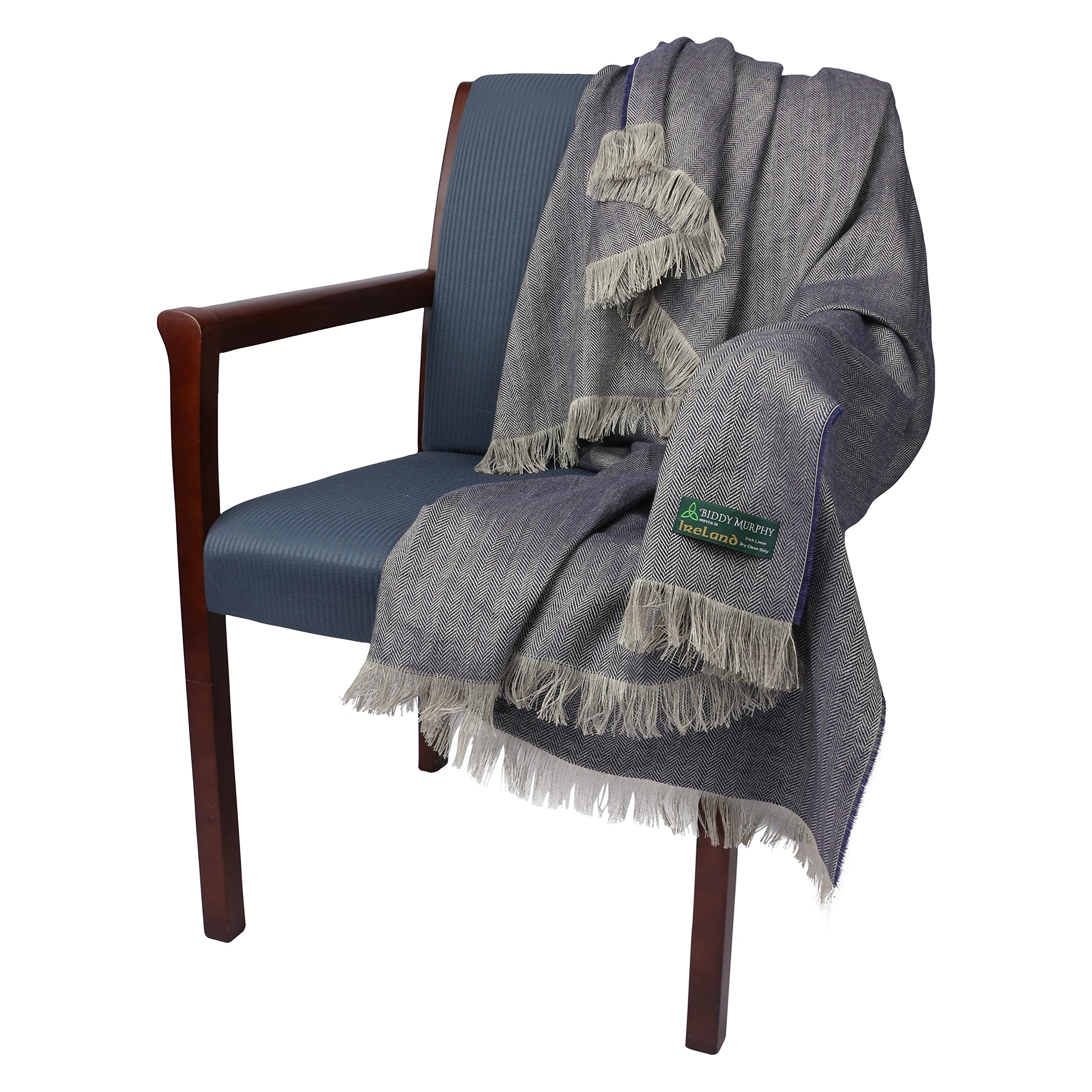 Enjoy timeless comfort and understated elegance with this authentic Irish 100% linen throw blanket in a versatile denim gray tone, beautifully woven in a classic herringbone pattern. Imported directly from Ireland, this heirloom-quality piece reflects generations of craftsmanship and enduring style.