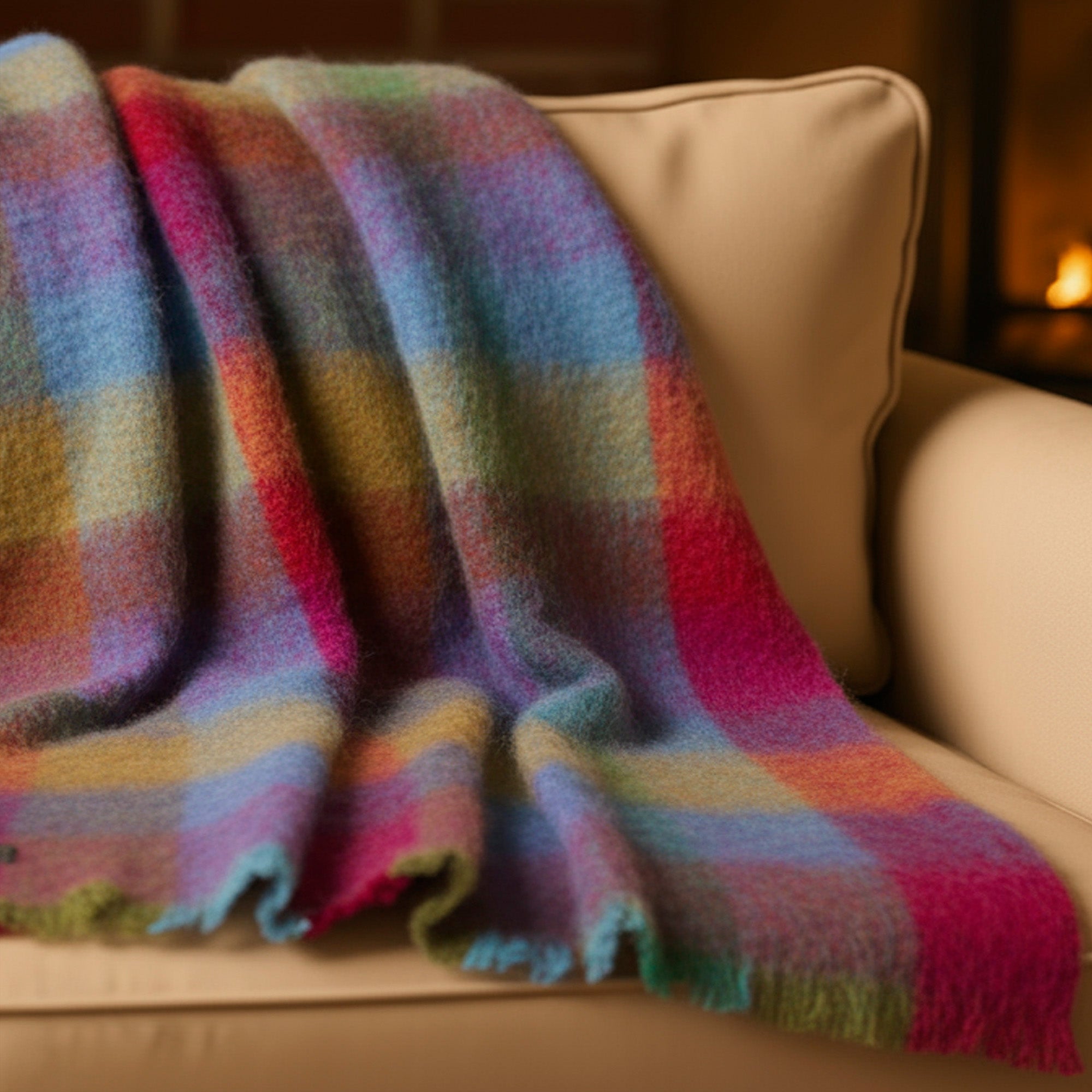 Wrap yourself in warmth and elegance with this exquisite Irish mohair throw blanket, woven in County Tipperary, Ireland. Crafted from a premium blend of 70% mohair and 30% wool, it offers a luxuriously soft, silky feel while remaining durable and long-lasting.