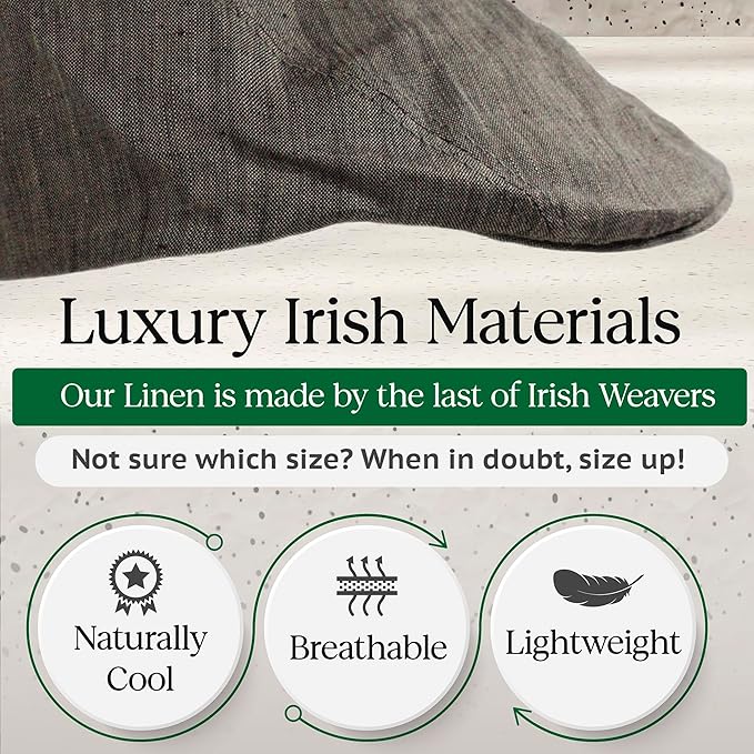 - AUTHENTIC IRISH CAP - This linen cap is a lighter weight version of the traditional Irish driving caps many have grown to love. Irish linen is cheerished for the way it looks, feels and performs. The linen is woven by Emblem Weavers, one of the very last makers of Irish linen. The cap is made by our maker-partner in Co. Galway, Ireland. Whose products are of excellent craftsmanship and outstanding quality. This cap is as authentic as they come.