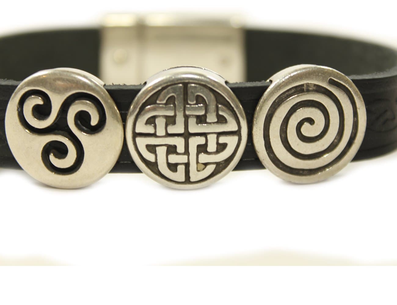 Available in two lengths, 7" or 7 1/2", this bracelet will surely fit most anyone! The Celtic charm bracelet is beautifully crafted from high quality leather. The genuine Irish leather is vegetable tanned, a process that uses natural ingredients such as the bark of chestnut trees creating a long lasting leather bracelet! The silver charms are crafted from metal.