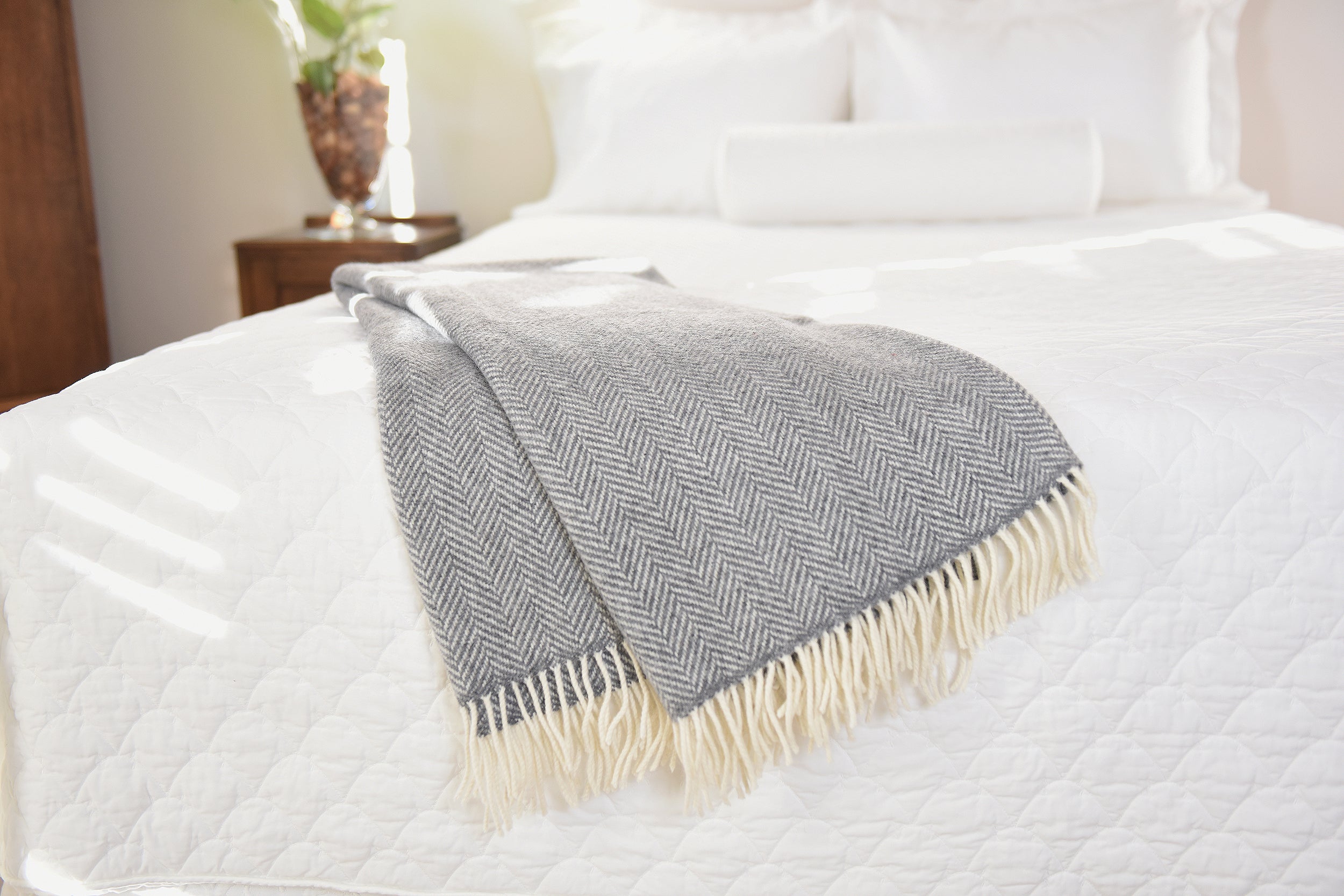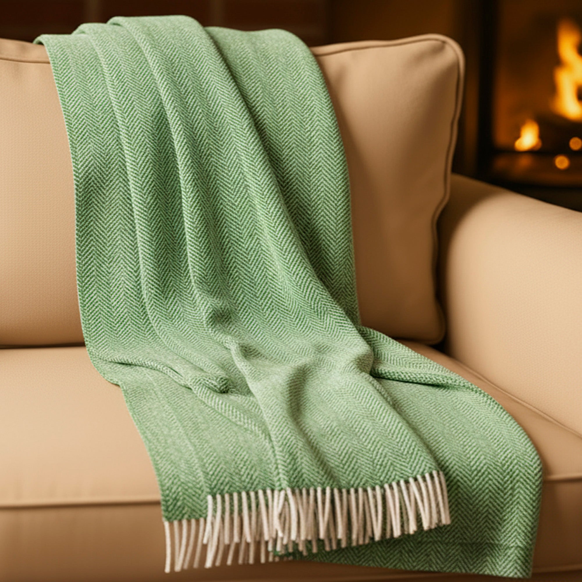 Measuring 54" x 71" with a 3" fringe on each end, it offers generous coverage and effortless versatility. The classic Herringbone pattern evokes Ireland’s rich weaving heritage and adds sophisticated texture that complements both modern and traditional décor. Lightweight yet insulating, it provides year-round comfort without bulk.