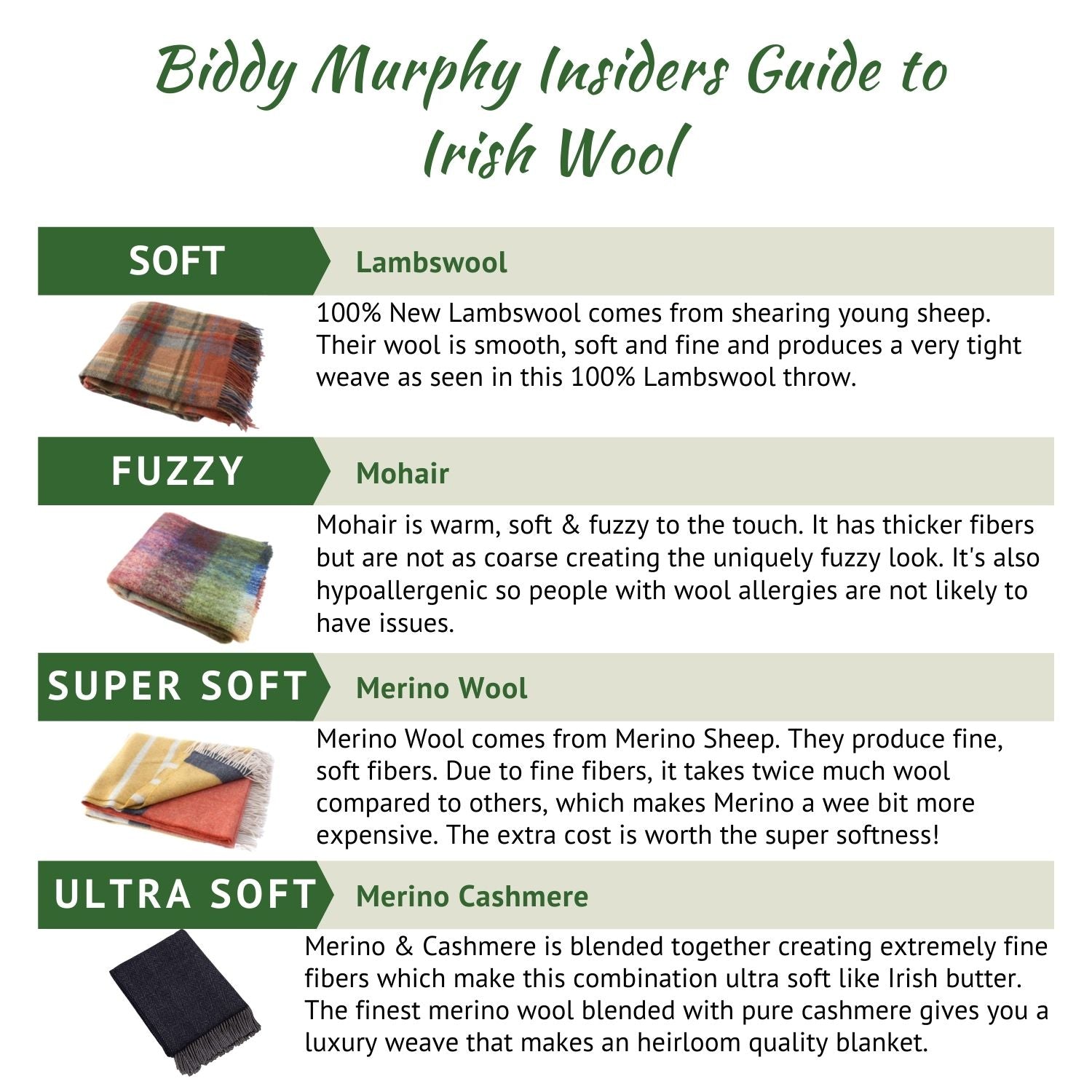 - BIDDY MURPHY EXPERIENCE: We are real Irish people partnering with the best Irish makers, like Kerry Woollen Mills. You'll be delighted with this wool comforter or we'll make it right