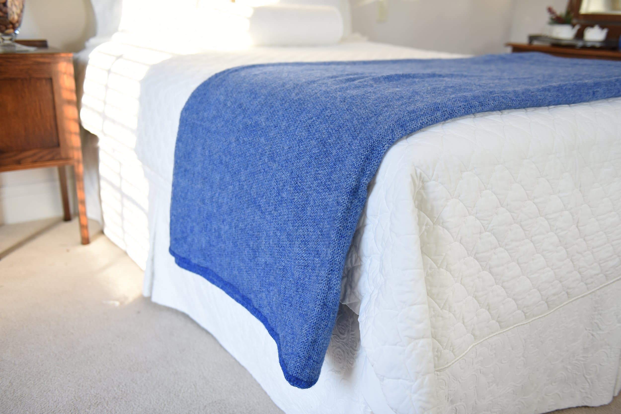 I learned a long time ago that you spend too much time in bed to sleep on a bad mattress or have cheap bedding. I got married a year ago and bought this blanket for my wife as an anniversary gift. I knew that it would keep her warm and help me to ditch our backup synthetic blanket. I have been trying to remove synthetic stuff from our house and knew this blanket would keep her warm. I had no idea that I would love it possibly more than her. The weight and feel are perfect. The color and pattern are beautiful. It not only keeps her warm but it doesn’t make me too hot. We both have Irish heritage so the country of origin is also appreciated. Absolutely perfect ❤️
