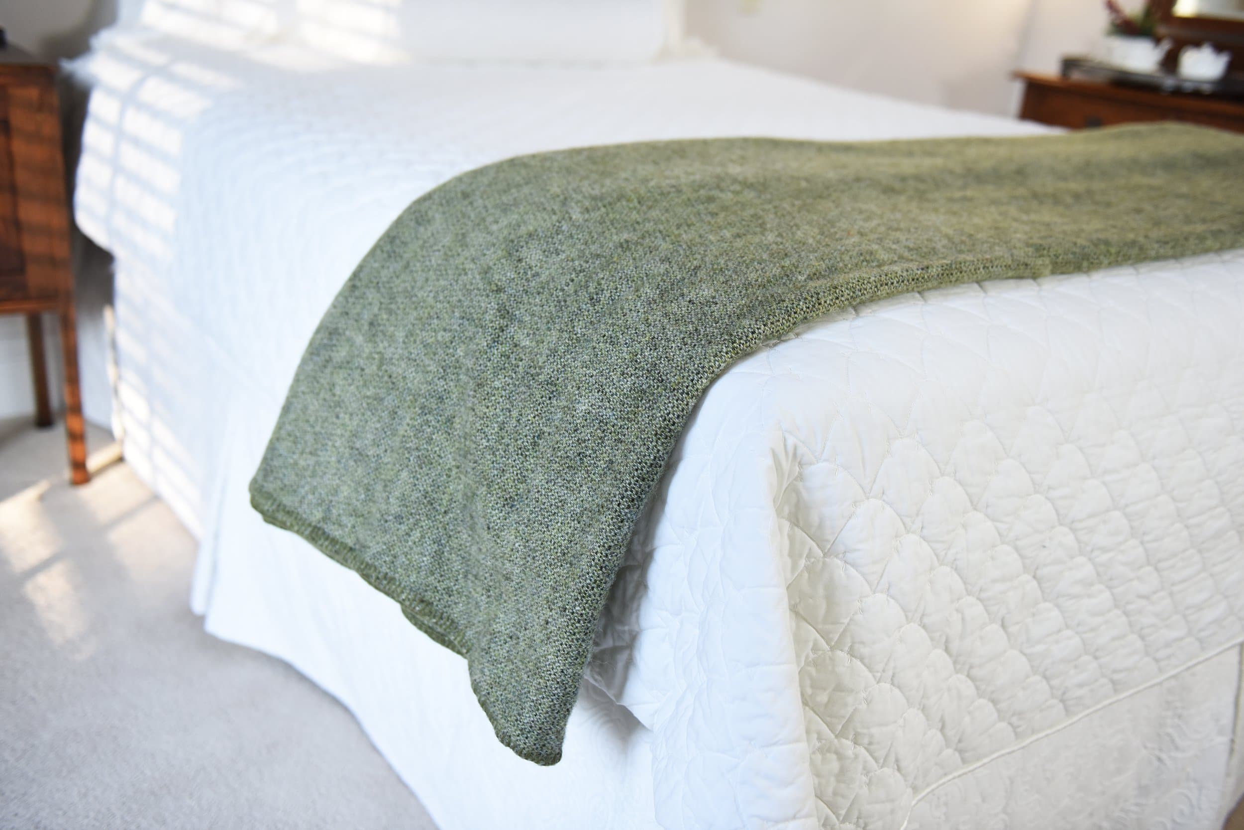 At Kerry Woollen Mills, every stage of production takes place on-site — from selecting and washing the fleece, to dyeing, blending, spinning, weaving, and finishing. Only the finest lowland wools are chosen for their color, crimp, and fiber length, producing a durable yet soft yarn that weaves into a beautifully textured blanket.